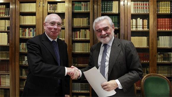 El pasado miércoles 24 de febrero, el presidente de la Real Academia Española (RAE), Darío Villanueva, y el presidente de la RSME, Francisco Marcellán, suscribieron un convenio para “favorecer el estudio de la terminología matemática en lengua española”. Gracias a este acuerdo, la RAE facilitará a la RSME la lista de términos matemáticos para su revisión, y corrección si es el caso, por parte de expertos en esta ciencia. Por otro lado, la RSME propondrá a la RAE vocablos matemáticos ausentes en el diccionario para su posible inclusión en la futura 24.ª edición.