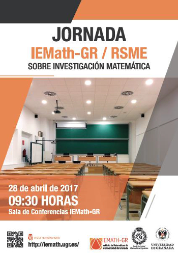 Esta jornada tendrá lugar el próximo viernes 28 de abril, a partir de las 9:30 en la Sala de Conferencias del Instituto de Matemáticas de la Universidad de Granada (IEMath-GR). Es una actividad organizada conjuntamente por el IEMath-GR y la Real Sociedad Matemática Española (RSME) y está dirigida al colectivo de matemáticos, tanto estudiantes como investigadores, del entorno.