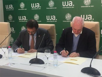 El pasado 20 de abril, coincidiendo con la XVIII Reunión de la Conferencia de Decanos de Matemáticas, celebrada en Jaén, Juan Gómez Ortega, rector de la Universidad de Jaén, y Francisco Marcellán Español, presidente de la RSME, firmaron el Protocolo General de Actuación entre la Universidad de Jaén y la Real Sociedad Matemática Española.
