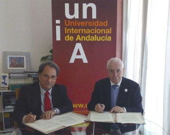 El presidente de la Real Sociedad Matemática Española (RSME), Francisco Marcellán, y el rector de la Universidad Internacional de Andalucía (UNIA), Eugenio Domínguez Vilches, han firmado un protocolo general de actuación mediante el que se establece la cooperación en actividades de interés mutuo.